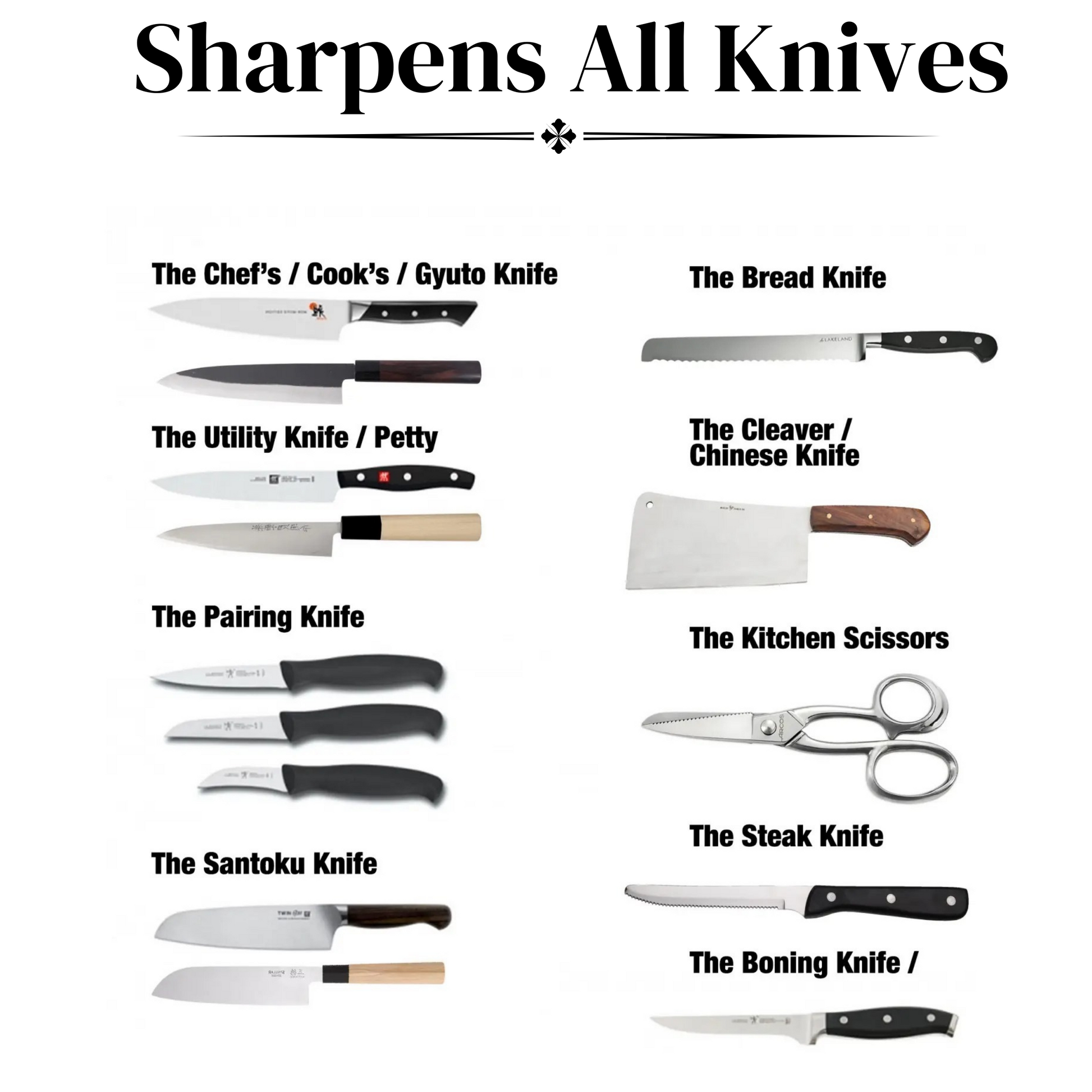You name it: Kitchen knives, pocket knives, hunting knives - You can sharpen any knife you desire thanks to the innovative adjustable angle design of the Holy Grail of kitchen utensils - BidoSharp!
